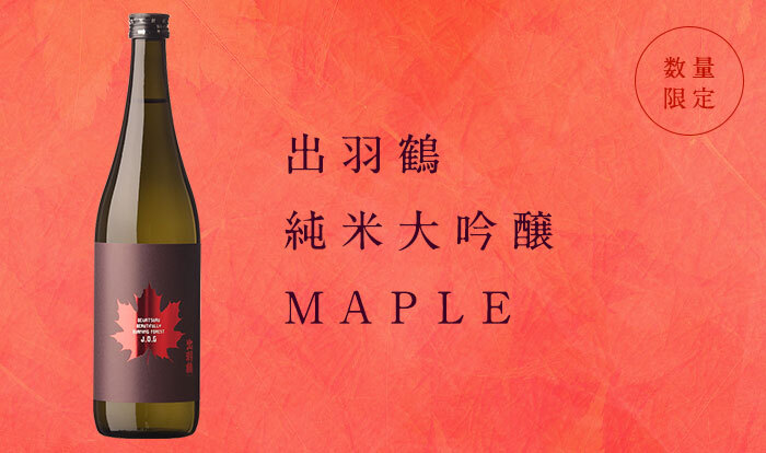 秋の味覚が豊富に揃うこの時期に、深い味わいの出羽鶴純米大吟醸MAPLEを発売いたします。山田錦を協会1901酵母で仕込み、蔵内でゆっくりと低温熟成させることで香味を凝縮させました。秋の深まりとともに、紅葉のようにじっくりと広がる旨みをお楽しみ下さい。