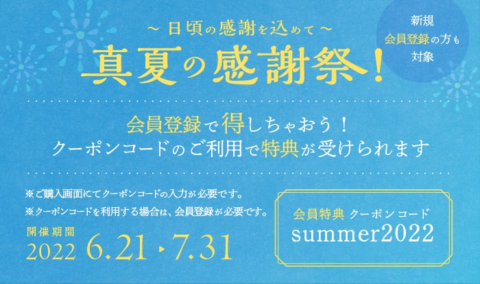 会員の皆様にはクーポンコードご利用でお得にお買い物ができます。